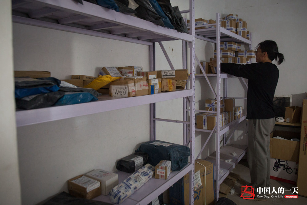因为网上的订单多且零散,每单都跑一趟快递站影响效率。大多数时候,周大帅每隔几天就要往快递站补一次货,将属于自己的一个货架填满。每接到订单,周大帅就把收货信息发给快递站的朋友,由朋友直接从货架上发走。