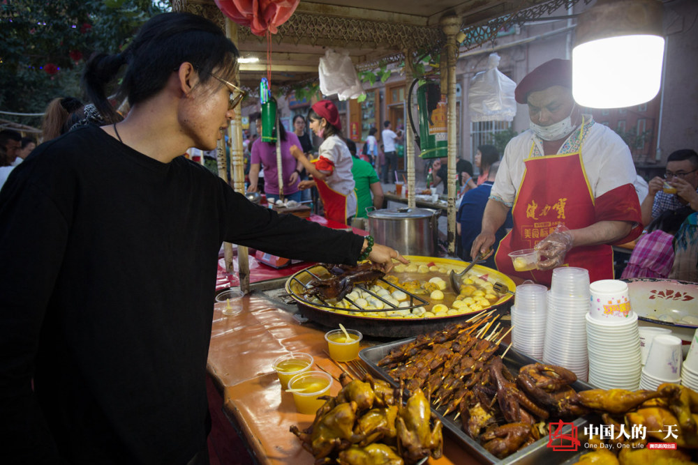 晚上十点多,周大帅忙完了一天的工作,在夜市上解决了晚饭。这位天生爱吃辣的湖南小伙子的口味被新疆美食折服,除了创业,食物也是让周大帅留下来的原因之一。