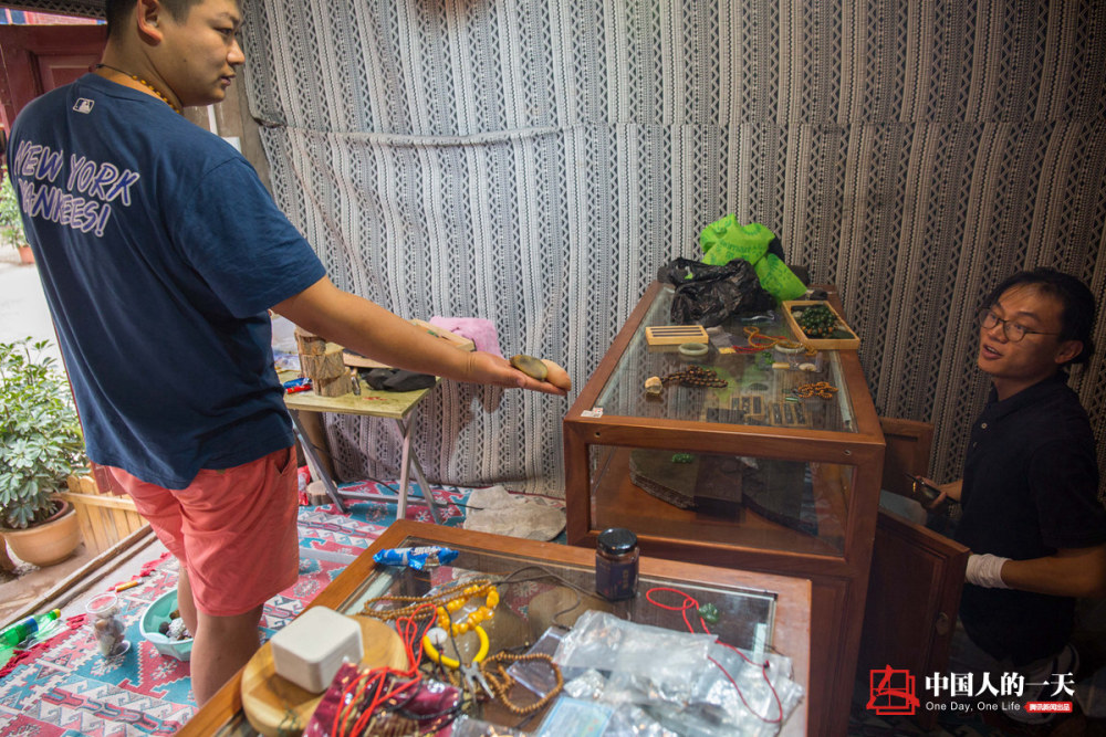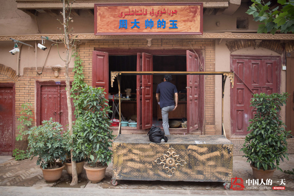 创业之余,周大帅还喜欢玉石,尤其是新疆的玉石。周大帅曾在当地的玉石协会做过运营,结识了一些喜欢玉石的朋友。今年,他在喀什老城区里租下了店面,卖玉石籽料和玉石挂件。每到周末,这里游人是游客的必经之地,周大帅会抽出时间来看店。