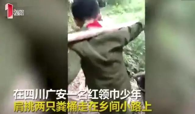 前段时间,一个带着红领巾挑粪的小男孩在网上火了。