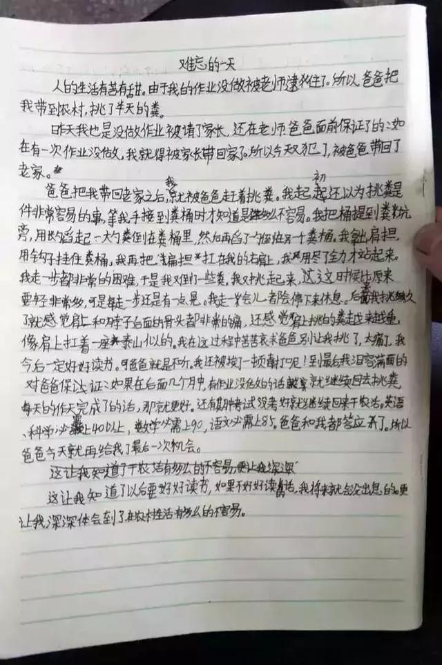 第三天,没有完成作业的他真的被叫去挑粪了。