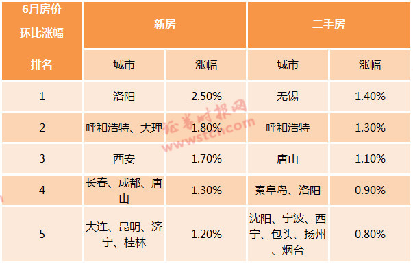 国家统计局发布的最新房价数据显示,6月,70大中城市中,洛阳新房价格环比涨幅达到2.5%,涨幅位居全国第一。而其今年3、4、5月的新房价格涨幅排名分别是第58、第7、第4。可见其房价上涨态势明显。