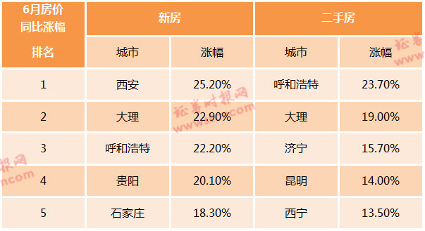 除洛阳外,5月新房价格环比涨幅全国第一、同比涨幅连续6个月全国第一的西安也已经加码楼市调控。6月20日,西安出台了限购升级政策,外地人购房需5年社保或个税,并且扩大了限购范围,还对新落户居民购房提出落户满一年或连续缴纳12个月社保或个税的要求。