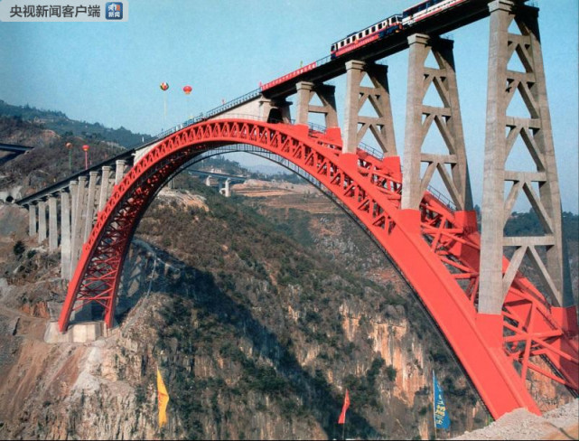 1999年,贵州水柏铁路北盘江大桥,是世界上第一座上承式推力转体式铁路钢管混凝土拱桥,重1.2万吨,创造了当时桥梁转体世界之最。