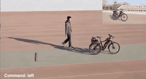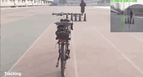 这辆无人自行车可实时感知周围环境。它可以在跟随前方试验人员的同时自动进行避障操作。装上芯片后,自行车可以根据语音指令、视觉感知的反馈产生实时信号,从而对电机进行控制,以达到保持平衡,改变行进状态。