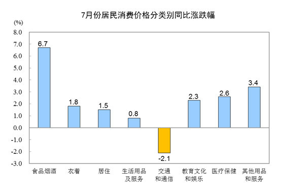 原标题:国家统计局:7月全国CPI同比上涨2.8% 总体平稳略有升降