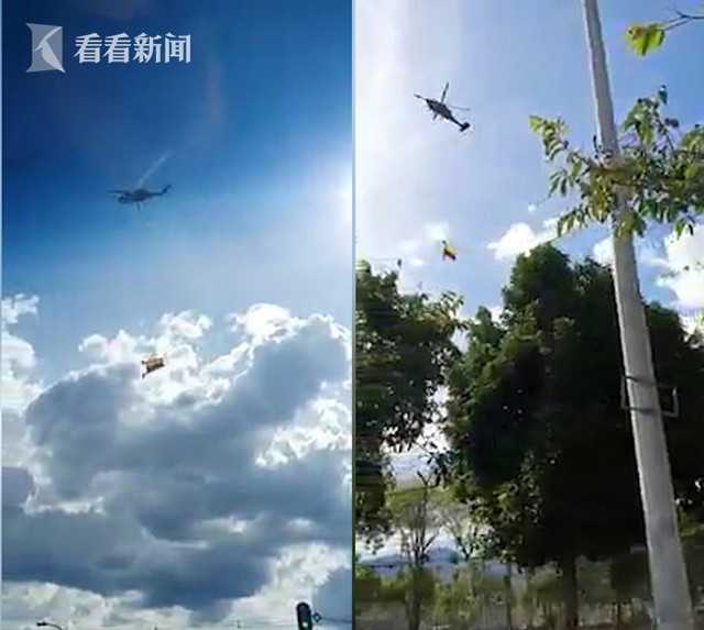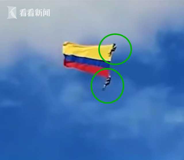 视频中可见,两架直升机各悬吊一面哥伦比亚国旗,国旗上方和底部各配备一名士兵撑旗,士兵不时向现场观众挥手致意。然而就在直升机即将在奥拉亚机场降落前,灾难一幕发生了,其中一架直升机的缆绳突然断裂,两名士兵随着国旗当场"自由落体",众目睽睽之下坠地惨死。