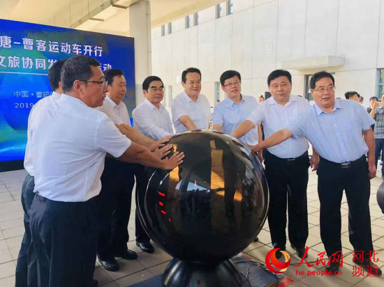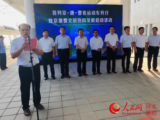 图为首列京-唐-曹客运动车开行暨京唐曹文旅协同发展启动活动现场。