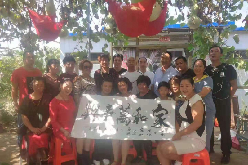 全球资源网唐山(王国臣 张立新)讯,2019年8月27日上午,由唐山古冶王喜庄村村民,今年78岁的董太领先生和书法家董占宝父子组织并发起的“以翰墨丹青,同心文化庆祖国70华诞交流会”既可采摘又可鉴赏书画的乐豐雅居采摘园展开。园中由董太领老人精心修剪培育30年的李子、杏、葡萄、梨树和各种无公害蔬菜具有田园风情。