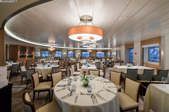 △邮轮主餐厅,可以为船上宾客提供各式餐饮,满足不同国家乘客的各种口味需求。