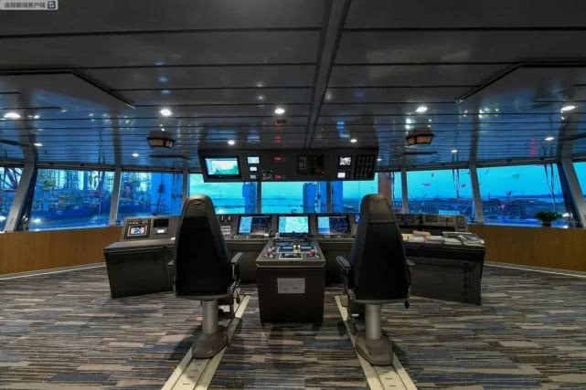 位于邮轮7层的驾驶舱,是整个邮轮的大脑,拥有智能化控制系统,一个人即可实现对整个邮轮的操控。