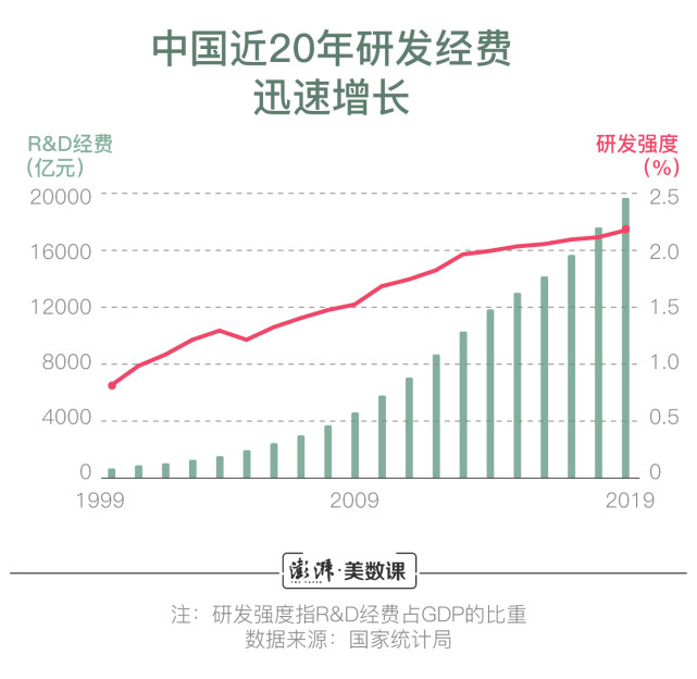 从2006年《国家中长期科学和技术发展规划纲要(2006-2020年)》提出“自主创新”战略和“建设创新型国家”的目标起,中国的研发经费就开始迅猛上涨。也是从这一年开始,中国的研发经费总量相继超过韩国、英国、法国和德国,并在2013年超越日本,成为仅次于美国的第二大科技研发市场。