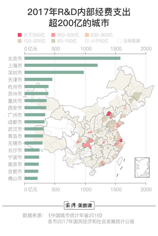 在新一轮的城市竞争中,科技驱动经济发展的模式使得科研愈加重要。那么,哪些城市的科研投入较多?