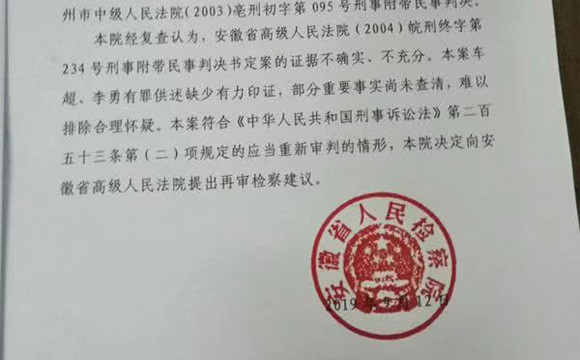 【澎湃新闻】安徽省人民检察院近日对发生于19年前的车超奸杀案作出刑事申诉复查通知书。最初车超等4人被控参与杀人,后经4年内多次审判,其中两名被告人无罪获释。