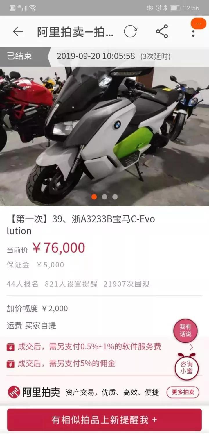 以其中一辆浙A牌照的宝马C-Evolution电动摩托车为例,尚未开拍,该车就已经收获了1.15万人次的围观,成为这批待拍车辆中毫无争议的“人气之星”。