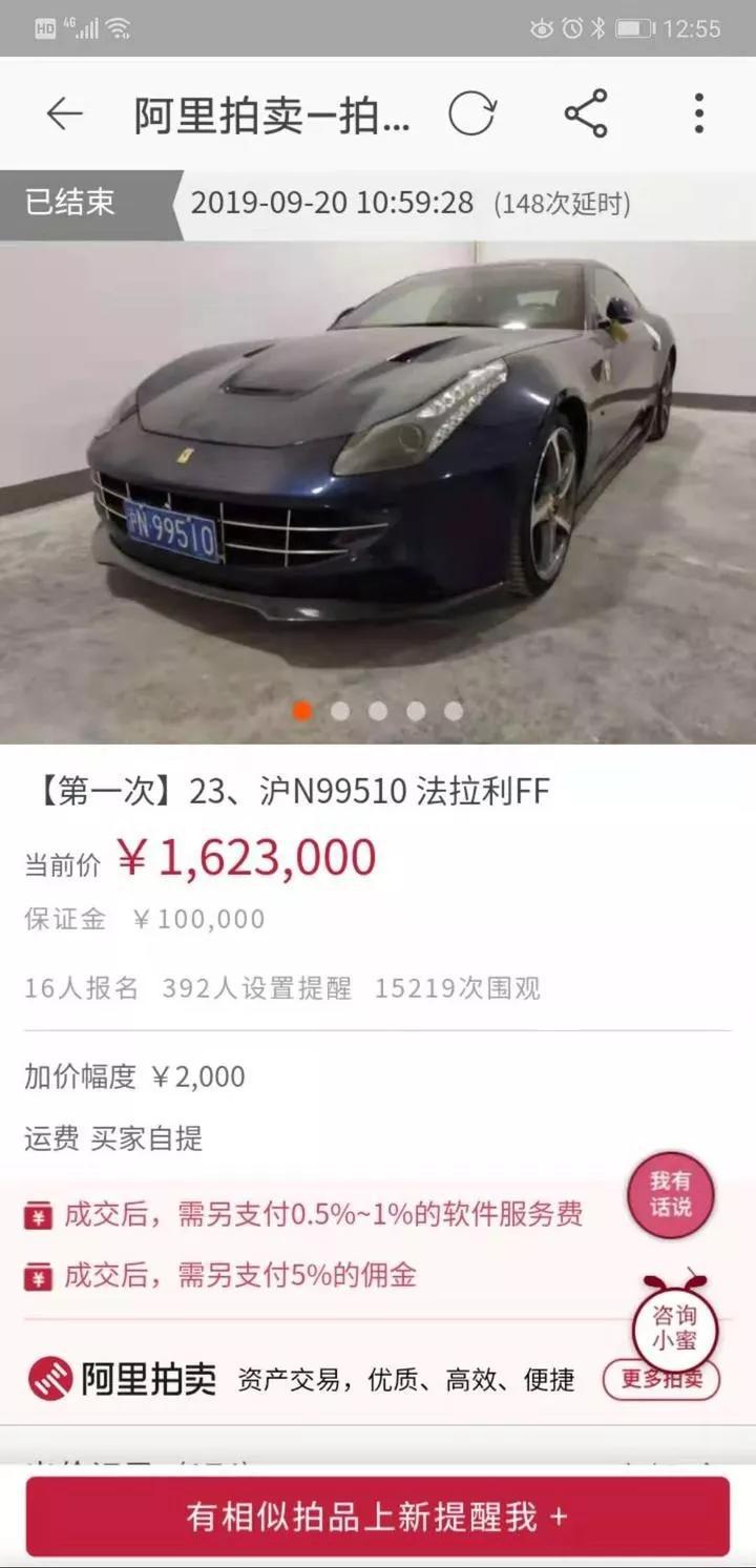 想来确实划算,这辆法拉利FF是2014年上牌,当时的指导价是560万元,总共才行驶了3.8万余公里,车况良好。全程一共16人参拍,1.5万人围观。