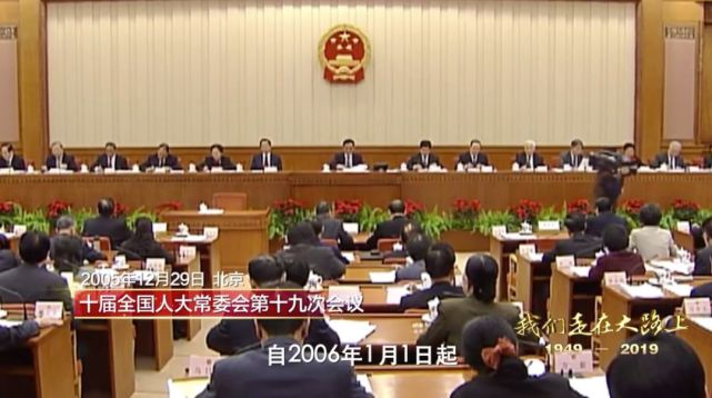 2005年12月29日,十届全国人大常委会第十九次会议通过决定,自2006年1月1日起正式废止《中华人民共和国农业税条例》。