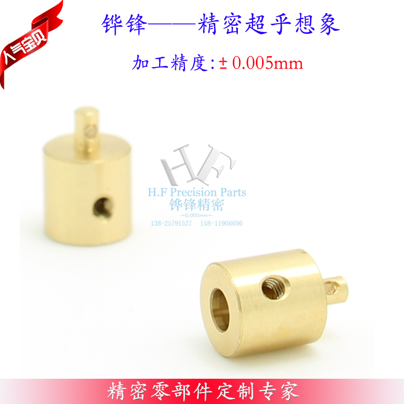 惠州市惠城区铧锋精密五金加工厂,专业定制各类精密五金零件,本公司拥有9轴车铣钻复合机床设备,可以一次装夹做深孔、端孔、偏心孔、斜孔、侧铣、端铣、复合铣、一次送料有310长,我司尽可能的在制作产品时,减少装夹的次数,减少人工,从而减掉装夹和人工的操作不当而对产品的精度的影响。此款铜转向轴为汽车模型客户定制,产品非常的小,总大小只有5mm,要车一个1mm大的台阶,一个0.5mm大的侧孔,一个3mm大的侧孔,并且产品对精度的要求非常高,在0.01mm内。我司采用进口4轴联动设备对产品进行加工,产品从原材料到成型只需要一次装夹,客户在收到样品后非常的高兴,表示将来永久和铧锋建立紧密联系,我司在制作批量生产时也会严格控制产品的品质,增加巡检力度,确保产品品质不出现任何问题。欢迎广大客户前来定制各类精密五金零件。