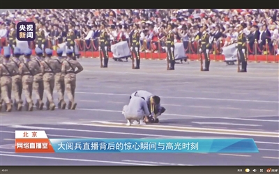 9月30日,国庆直播总摄像栗严随直播团队进入直播现场,突然接到通知,A1机位坏了。A1机位有多重要?栗严介绍,当天的直播一共有一个主系统、6个分系统。其中,布局在天安门前、金水桥两边的A系统,承担着分列式和整个游行队伍的正面拍摄工作,整个1600多个镜头中,A系统承担了近1000个镜头的拍摄,A1要拍摄其中的100个镜头。而且这100多个镜头牵涉到的都是关键人物的表情,“A1机位如果出了问题,每个方队主官敬礼,包括喊口令的将军们的表情,还有群游部分群众的表情,肯定不会有最好的角度了。”万幸的是,A1最终被修好了,当时时间已经到了10月1日8点30分。