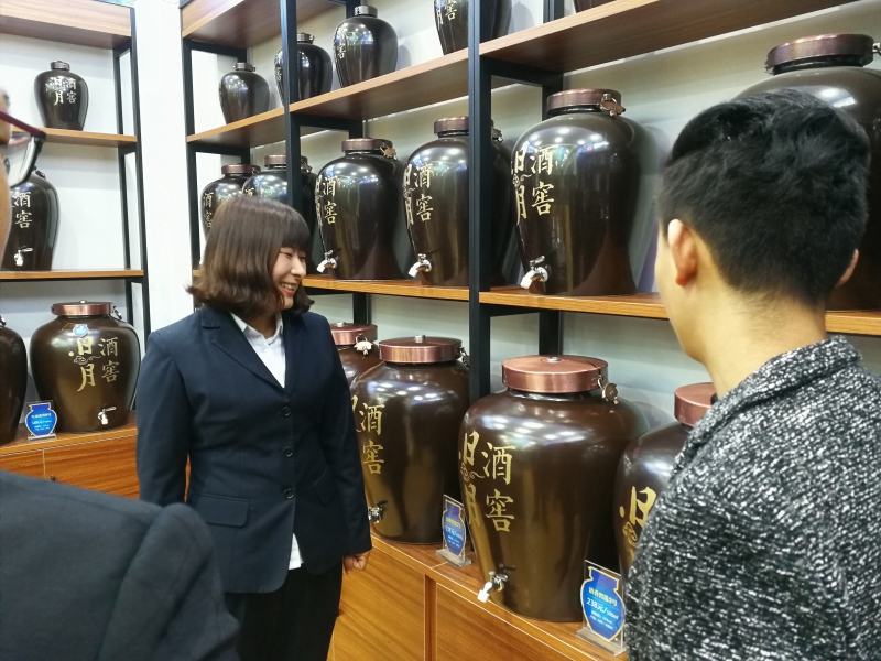 日月酒窖(文明路店)店长李红霞女士,亲自为到访的人员进行讲解。