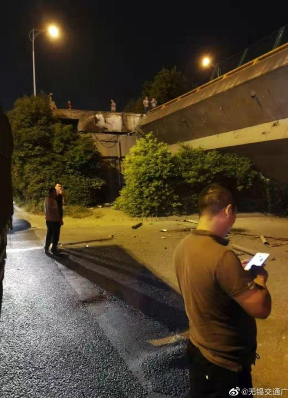 从@无锡交通广播 发布的现场图片及视频显示,被桥段压住的车辆不止一辆,其中还有一辆小汽车的驾驶舱位置被压住。另据扬子晚报,除了轿车被压在桥下,一辆拉着钢卷的货车也掉了下来。