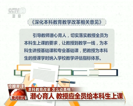 《意见》要求,引导教师潜心育人,切实落实教授全员为本科生上课的要求,让教授到教学一线,为本科生讲授基础课和专业基础课,把教授为本科生的授课学时纳入学校教学评估指标体系。