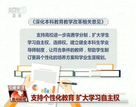 在学分制度的设置上,《意见》明确指出,支持高校进一步完善学分制,扩大学生学习自主权、选择权。建立健全本科生学业导师制度,让符合条件的教师,帮助学生制订更具个性化的培养方案和学业生涯规划。
