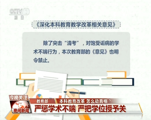 除了突击“清考”,对饱受诟病的学术不端行为,本次教育部的《意见》也明令禁止。《意见》要求严肃处理各类毕业设计(论文)学术中的不端行为,严格毕业要求,严把学位授予关。
