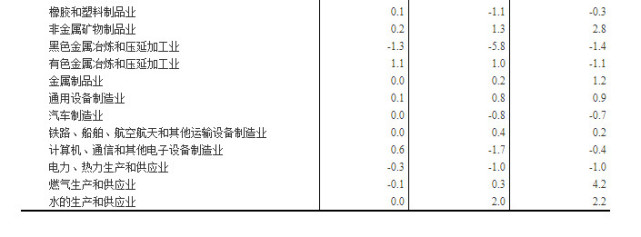工业生产者购进价格中,农副产品类价格上涨2.2%,有色金属材料及电线类价格上涨0.9%,建筑材料及非金属类价格上涨0.4%;黑色金属材料类价格下降1.0%,燃料动力类价格下降0.1%。