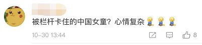 值得一提的是,除了这些“很有梗”的cosplay之外,一个“新闻里被栏杆卡住头的中国女童”装扮却引起了大家的争议。↓
