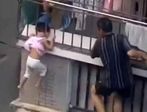 据悉,这名参加者的装扮参考来源于2017年发生在中国福建省的一起真实事件。当时,一名四岁左右女童的头部卡在4楼防盗网的缝隙,身子悬空。千钧一发之际,对面楼的一名大叔仅花数分钟爬到阳台外托举女童,把她推回阳台。