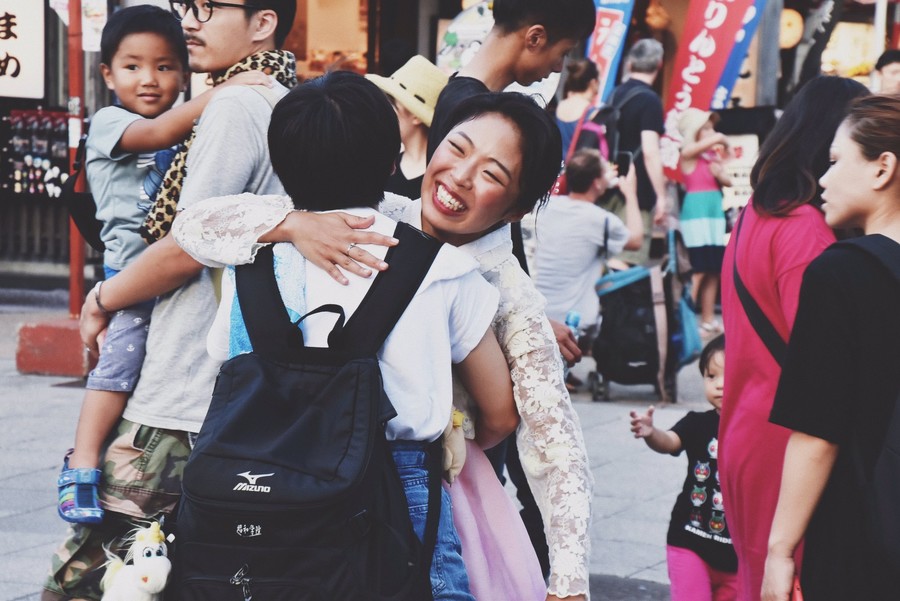 很多日本民众都与尹秀荣热情拥抱(BuzzJapan)