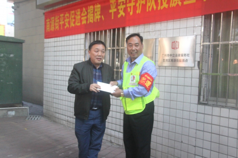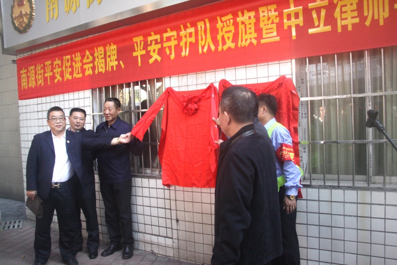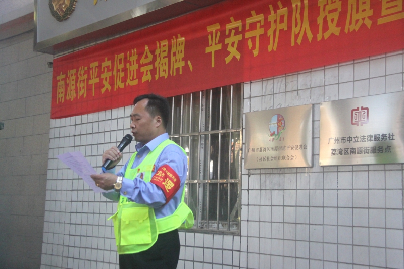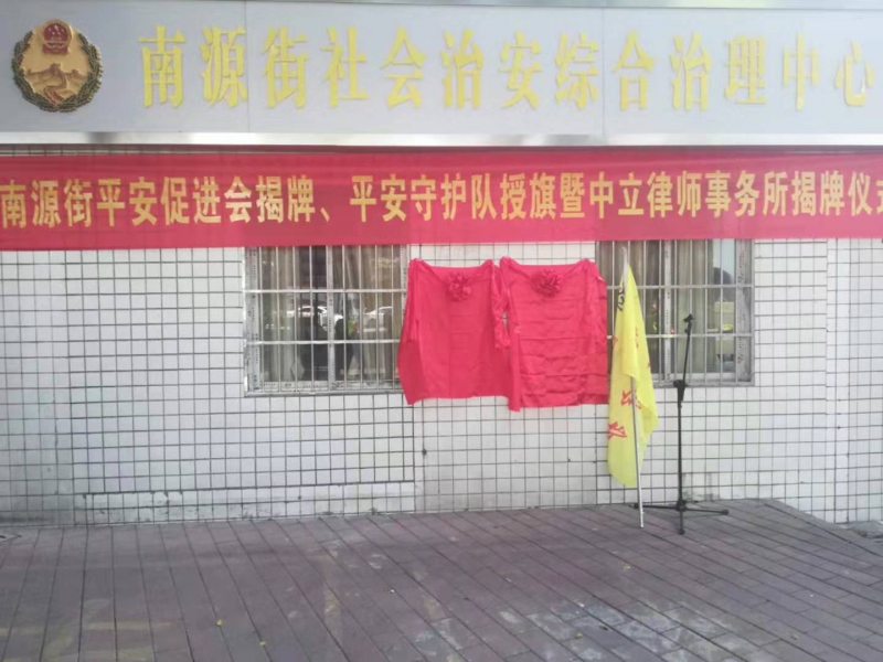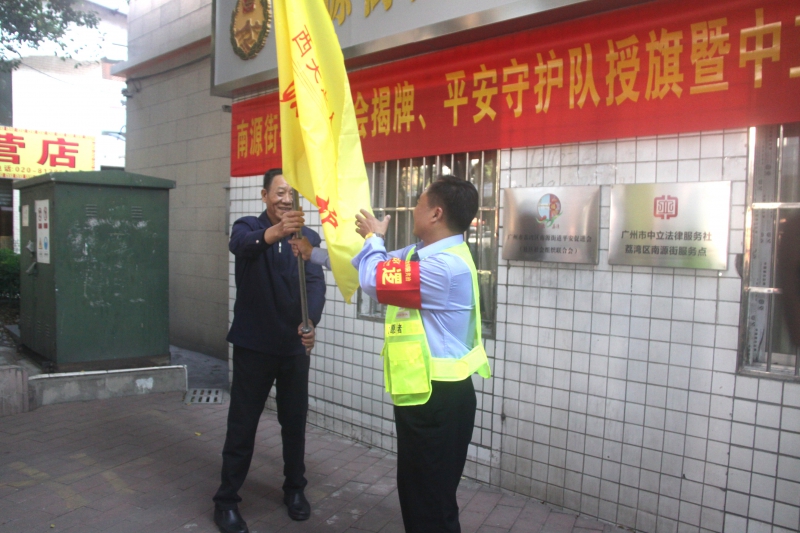 全球资源网(中国)粤港澳大湾区(沈安)讯:为深入贯彻落实党的十九大精神和习近平总书记的指示精神,学习新时代“枫桥经验”,营造共建共治共享社会治理格局,在广州市荔湾区委政法委领导的大力支持下,2019年11月29日在南源街综治信访维稳中心前空地举办“平安促进会揭牌、平安守护队授旗暨中立律师事务所揭牌仪式。