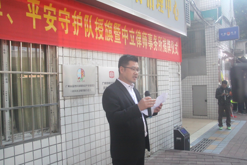 广州市中立法律服务社荔湾服务站站长钟乐军发言。