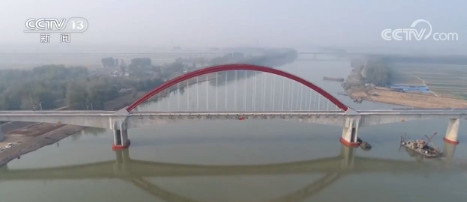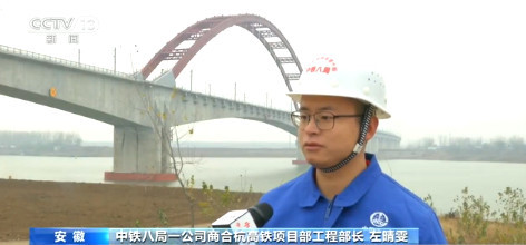 中铁八局一公司商合杭高铁项目部工程部长 左晴雯:通过设置这个拱的形式,使整个大桥整体的刚度增加了,在后面高铁运营的时候,起到整体结构保障的作用。(央视记者 李屹)