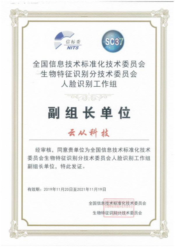 国家标准人脸识别工作组由商汤科技担任组长,云从科技担任副组长单位。据悉,云从科技,曾受邀参与包含国际标准联盟ISO/IEC、国际电信联盟ITU、美国电气和电子工程师协会标准协会IEEE-SA在内的国际、国内标准工作,也是业内第一个同时承担国家发改委人工智能基础平台、应用平台,及工信部芯片平台等国家重大项目建设任务的人工智能科技企业。