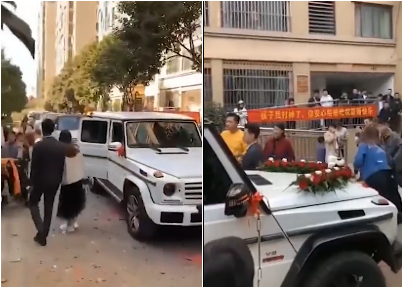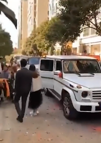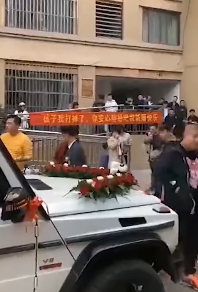 在接亲现场有很多群众围观,大家看见这“另类祝福”,纷纷都被惊呆。有的吃瓜群众不嫌事大,竟将此画面拍摄下来传上了网络,也引起了众多网友的热议。