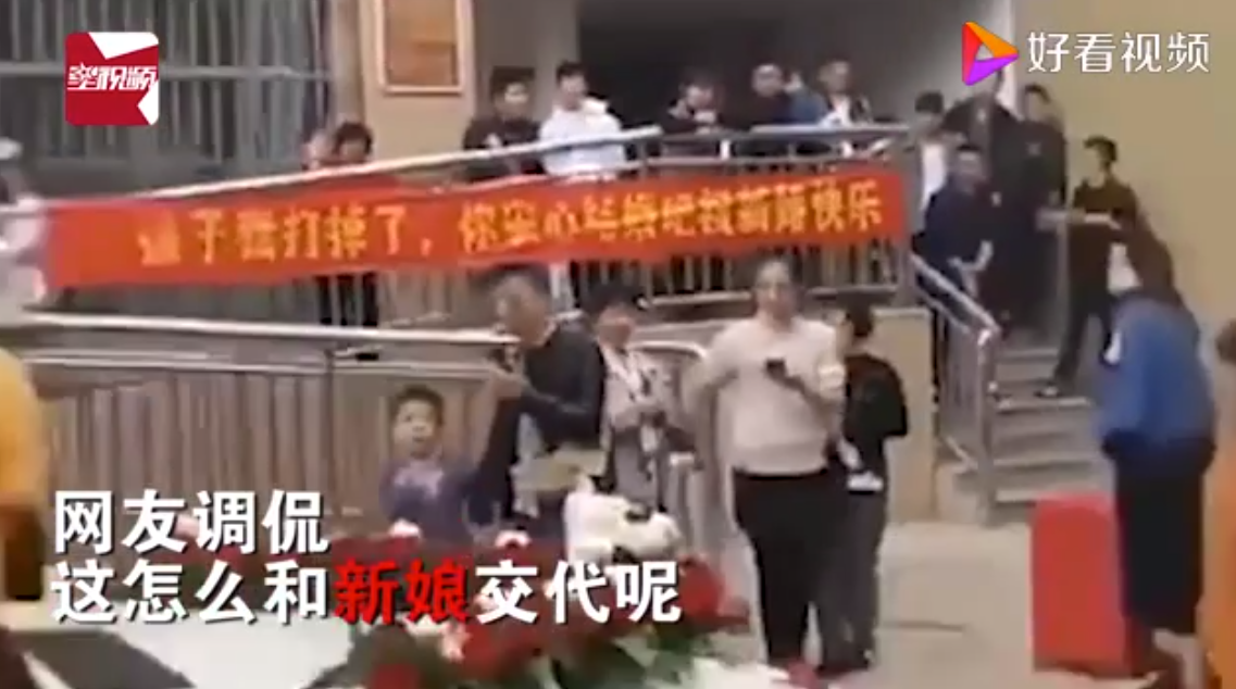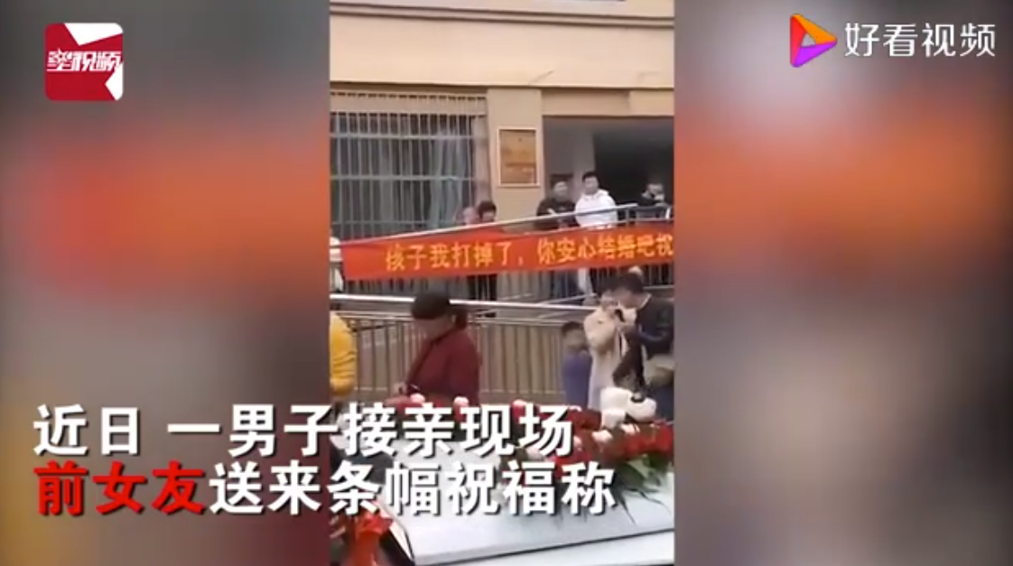 12月13日,在网络上,一段疑似“新郎接亲现场前女友拉横幅送祝福”的视频引起了广泛关注。