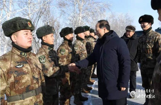 2019年12月31日,自治区党委书记石泰峰来到三角山哨所,看望慰问官兵。内蒙古日报社融媒体记者袁永红摄