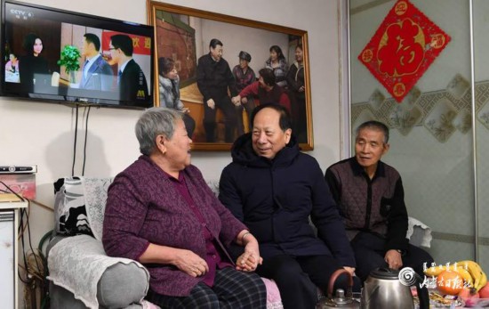 2019年12月31日,自治区党委书记石泰峰深入阿尔山市,到林业退休职工郭永财家走访。内蒙古日报社融媒体记者袁永红摄