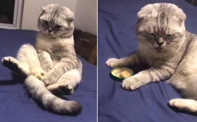 近日,网友(微视账号:我家的大美)这猫又被臭豆腐熏了,发了一段给猫咪吃臭豆腐乳的视频火了。视频中,主人拿了两块臭豆腐乳放在小猫身边,小猫闻到味道之后做出一副呕吐的表情,网友纷纷表示:这就是我本人没错了。