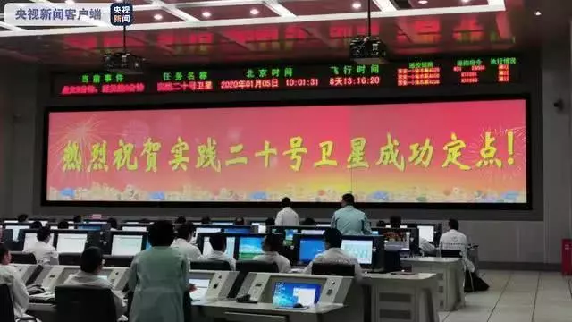 2020年1月5日10时01分,我国实践二十号卫星经历七次轨道机动后,在36000公里高度的地球同步轨道成功定点。