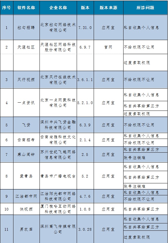 根据《工业和信息化部关于开展APP侵害用户权益专项整治工作的通知》要求,我部按计划、分阶段、稳步推进APP侵害用户权益专项整治行动,专项行动期间,第一批未按要求完成整改的3家企业,已于1月3日依法组织下架。