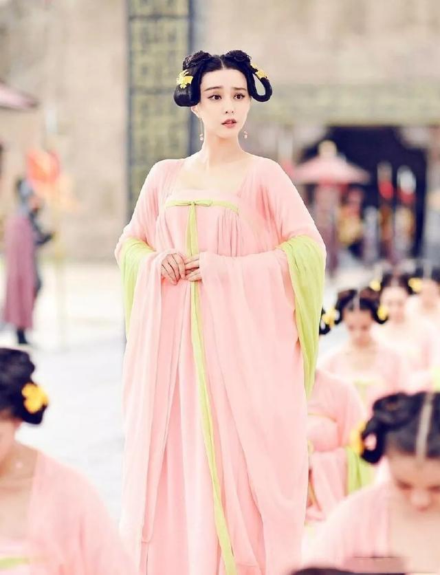 显然,这样的双髻造型看着简单,却也不是一般人能hold得住的。范冰冰在《武媚娘传奇》中初为秀女时也是这么一款类似的双髻,范冰冰五官漂亮毋庸置疑,但就是过于漂亮了,漂亮得有攻击性,风流无双的脸蛋配上这双髻,处处彰显着不和谐,哪怕这髻格外大。