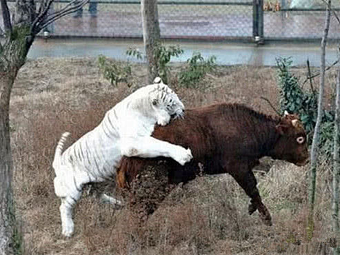 就像兽医小明下面要讲的这个故事一样。某天,一头小牛犊不知道怎么的误入了老虎园,当它闯进去后立马引起了园中一只白虎的注意,白虎见送上门的猎物,便蓄势待发以为有口福了。
