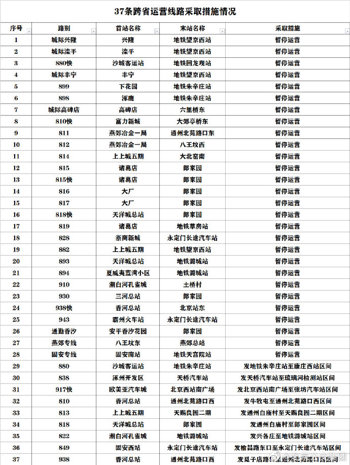 原标题:关于配合河北疫情防控对北京发往河北公交线路采取停运、区间措施的公示