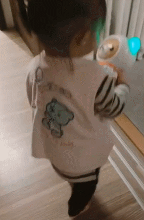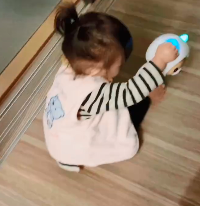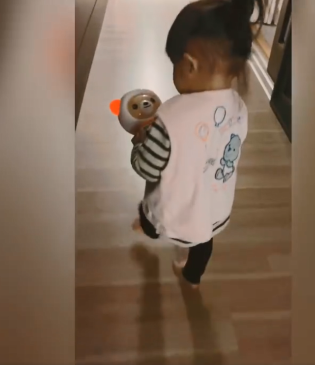 许久未出镜的小肉肉,转眼间已经学会走路,视频中快要一周半的小肉肉头过马尾,身穿黑白条纹打底衫外搭粉色小马甲,双手抱着玩具光脚走在木地板上一摇一晃像极了在打醉拳。