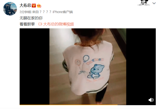 1月28日,宅在家中的欧弟一家人,老婆郑云灿也在个人社交平台晒出一段小女儿肉肉的视频,并附文写道:“无聊在家的你,看看醉拳。”