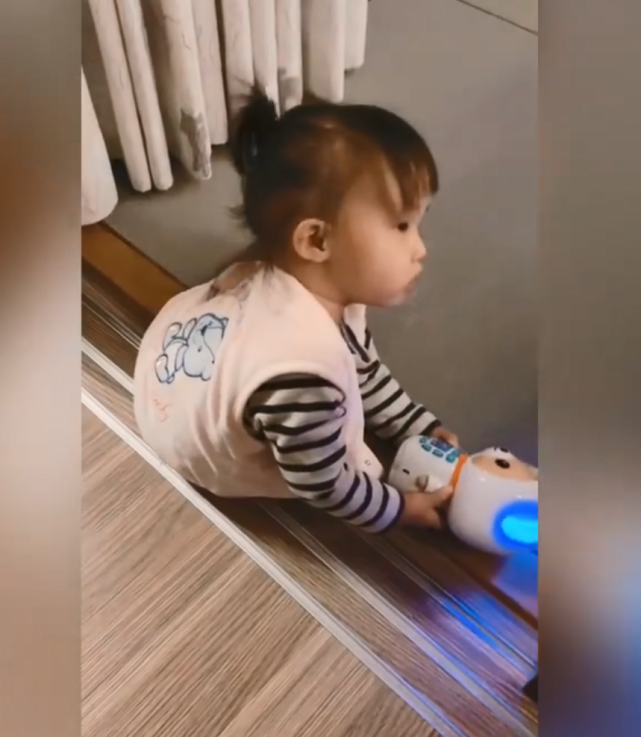 本来走路就不是很稳当的小肉肉,一边走还不忘看手中玩具的她也是走两步摔一步。虽然多次摔倒,不过,小肉肉还是很坚强的,摔倒后爬起来捡起玩具继续走,萌态十足。