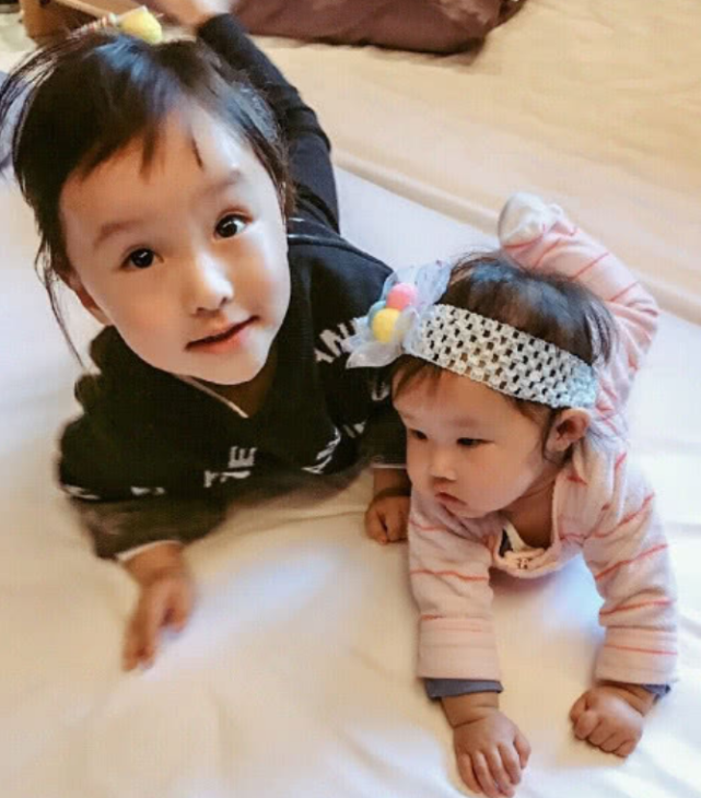 结婚后育有两个女儿的欧弟和郑云灿,大女儿jojo大眼睛双眼皮长得像妈妈多一些十分漂亮,小女儿小一些的时候长得像爸爸欧弟多一些。但现在长开不少的小肉肉,从她的侧颜来看像极了姐姐jojo小时候,简直就是迷你版姐姐。